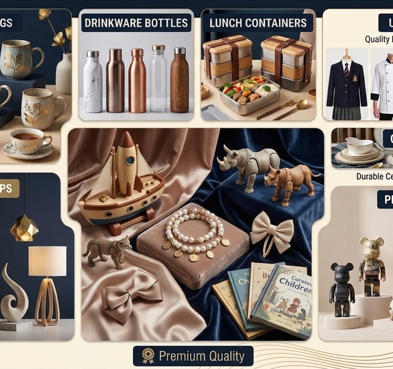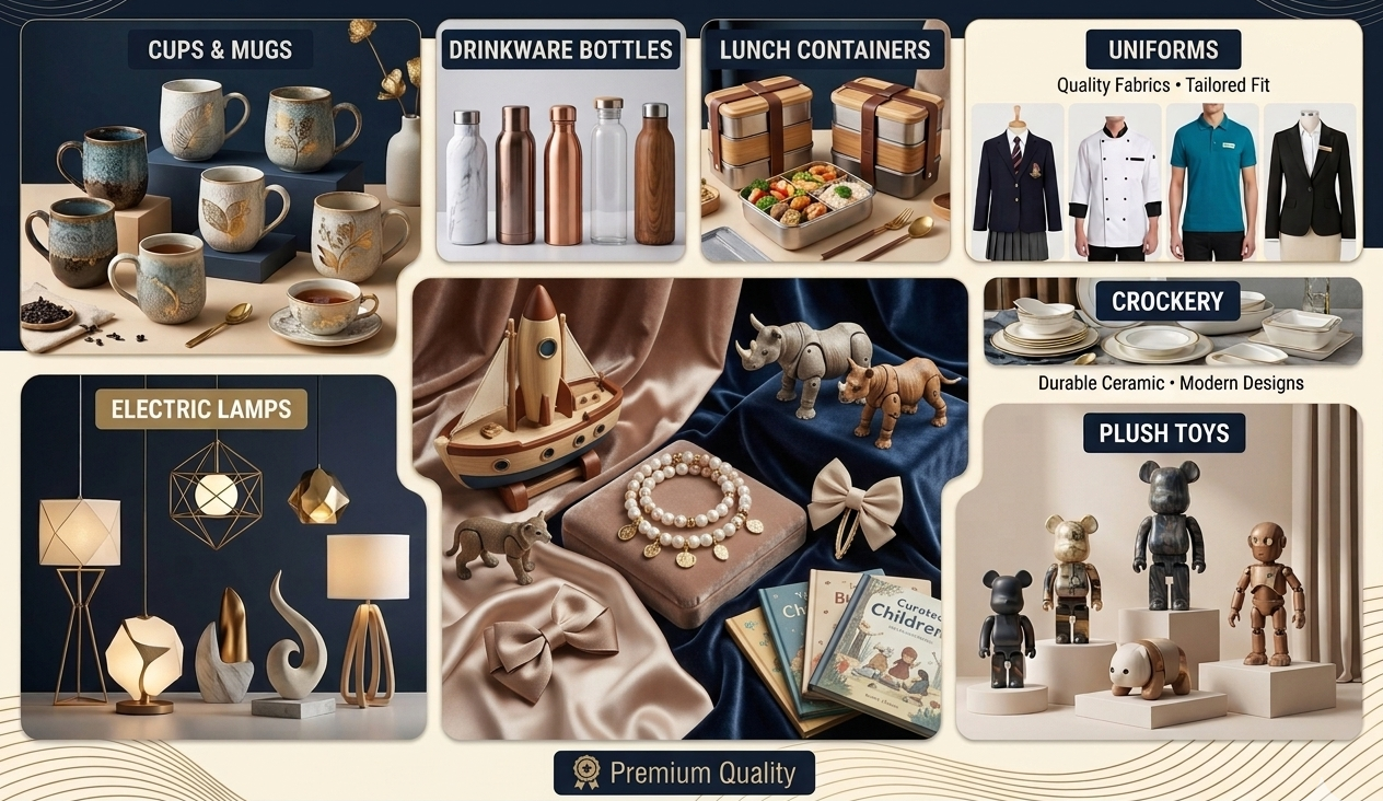 We source gift items, school uniforms, and crockery, ensuring they meet rigorous international standards.